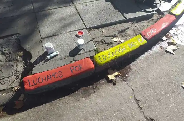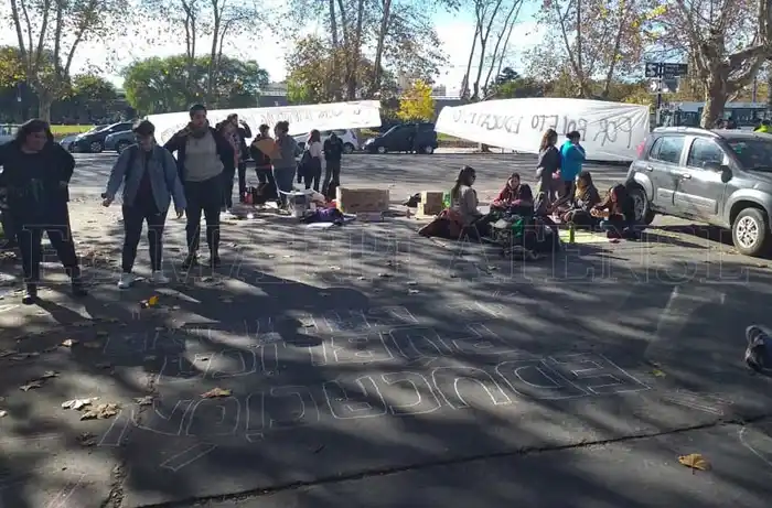 Los estudiantes de la Escuela de Artes Visuales Malharro realizan un corte de calle y una intervención para reclamar ante las problemáticas de infraestructura que tiene el establecimiento. Principalmente, las fallas son la falta del tanque de agua y gas.