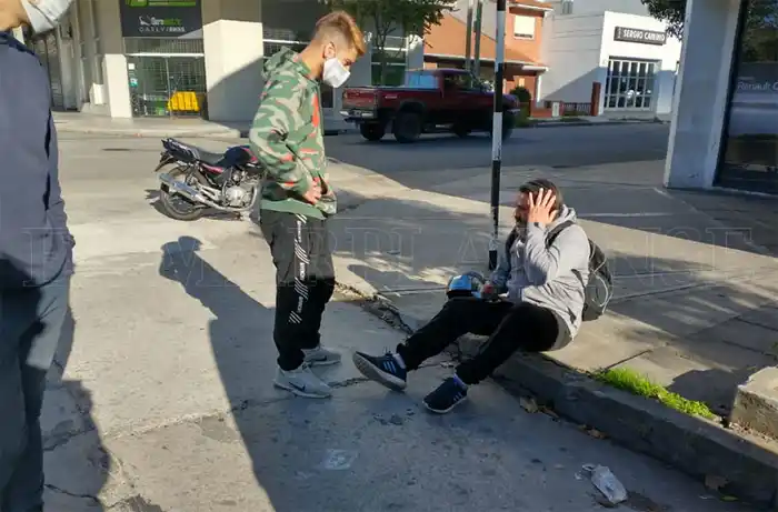 En Jujuy y Gascón, un auto Corsa embistió a una moto. El conductor del rodado sólo presentó algunos golpes y fue "atendido" rápidamente por el conductor del automotor.