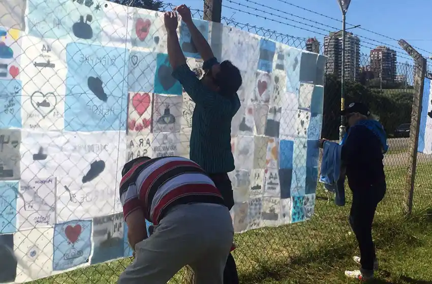 Los abrazos y los consuelos fueron una constante durante la tarde, al tiempo que se buscaban lugares para disponer de un espacio libre en un alambrado que está colmado de banderas argentinas. Algunas de ellas lisas, otras con dibujos, símbolos e incluso fotos de los submarinistas.