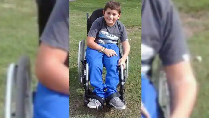 De esto hace ya tres años, que está en silla de ruedas. Lo trate por todos lados, ya sea en Mar del Plata como en Buenos Aires. Pero nadie me dio el tratamiento que necesita. Intelectualmente está muy bien. Va a quinto grado, como le corresponde por su edad.