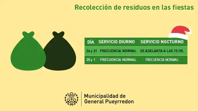 La Municipalidad indicó que, durante Navidad y Año Nuevo, el servicio de recolección de residuos diurna funcionará con normalidad durante los sábados 24 y 31 de diciembre, mientras que la nocturna se adelantará para las 15.