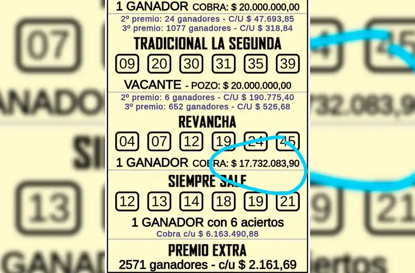 El afortunado había elegido los números 4, 7, 12, 19, 24 y 45, y se adjudicó la cifra millonaria en la modalidad Revancha del sorteo con los 6 aciertos.