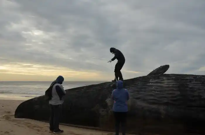 El ejemplar resultó ser un cachalote (Physetes macrocephalus) sobre el cual, a lo largo de la última semana, se realizaron tareas de monitoreo e inspección del área para reconocer el territorio y evaluar las posibilidades de retirarlo. El espécimen trata de un macho de alrededor 16 metros de longitud y un peso estimado en 30 toneladas, quedó varado en una zona de acantilados, con piso de restinga, un sitio con escasa arena y difícil acceso para maquinaria pesada.