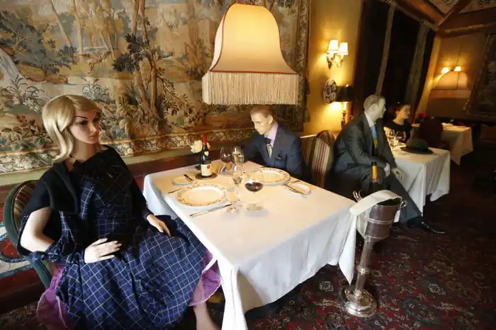 Sin embargo, ya hay varios lugares que recurren a la imaginación y humor para hacer la vuelta más divertida y agradable. Como lo que ha pasado en el prestigioso restaurante de cinco estrellas The Inn at Little Washington, situado en Virginia (Estados Unidos) que ha recurrido a los maniquíes.