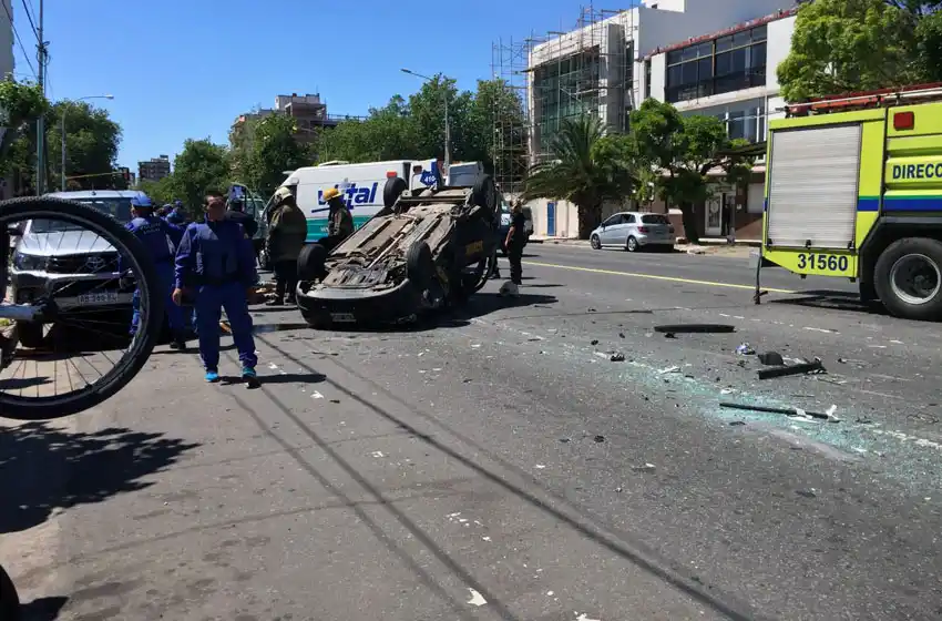 Fuerte choque y vuelco en Funes y Colón: hay cinco heridos
