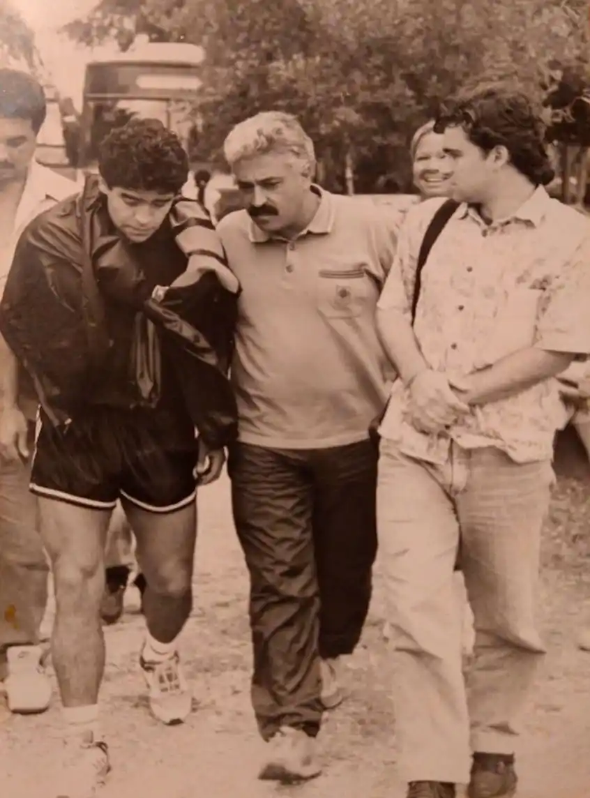 Diego se movió en Mar del Plata por esos días en una Mercedes Benz rural de color bordó. Obvio, con vidrios polarizados. Lo acompañaba un amigo de Fiorito que era el chofer y un "oso" de bigotes que oficiaba de "guardaespaldas". Intimidaba. Pero nunca le escuche la voz.