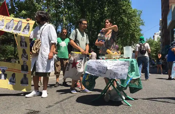 "Los de de la barra de Alvarado, que están con la UTA, le pegaron un compañero y le rompieron la cabeza con un palo. Encima la policía los defiende y nos vino a reprimir", explicó uno de los manifestantes en diálogo con El Marplatense.