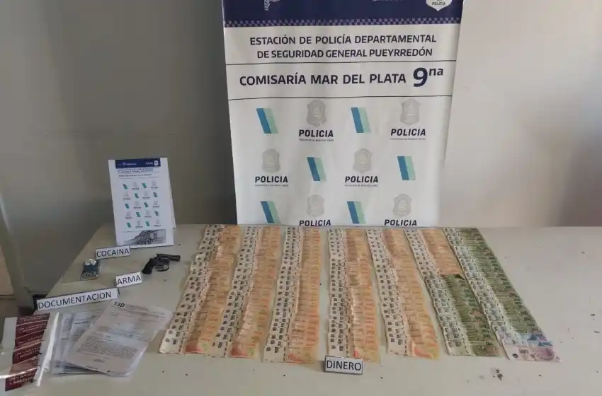 El personal realizó la aprehensión de uno de ellos, de 23 años. En cuanto al rodado, los uniformados secuestraron un arma de fuego, dinero en efectivo, sticker para grabado de cristales, balanza digital, formularios de transferencia, cédula de identificación del automotor apócrifos y envoltorio con 4,5 gramos de clorhidrato de cocaína.