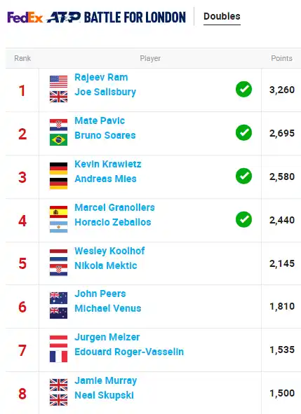 En referencia particular de la situación de ambos jugadores y su historial, para el español Marcel Granollers será su tercera aparición en las Finales luego de ser campeón en 2012 con su coterráneo Marc López y clasificar con el croata Ivan Dodig en 2017.