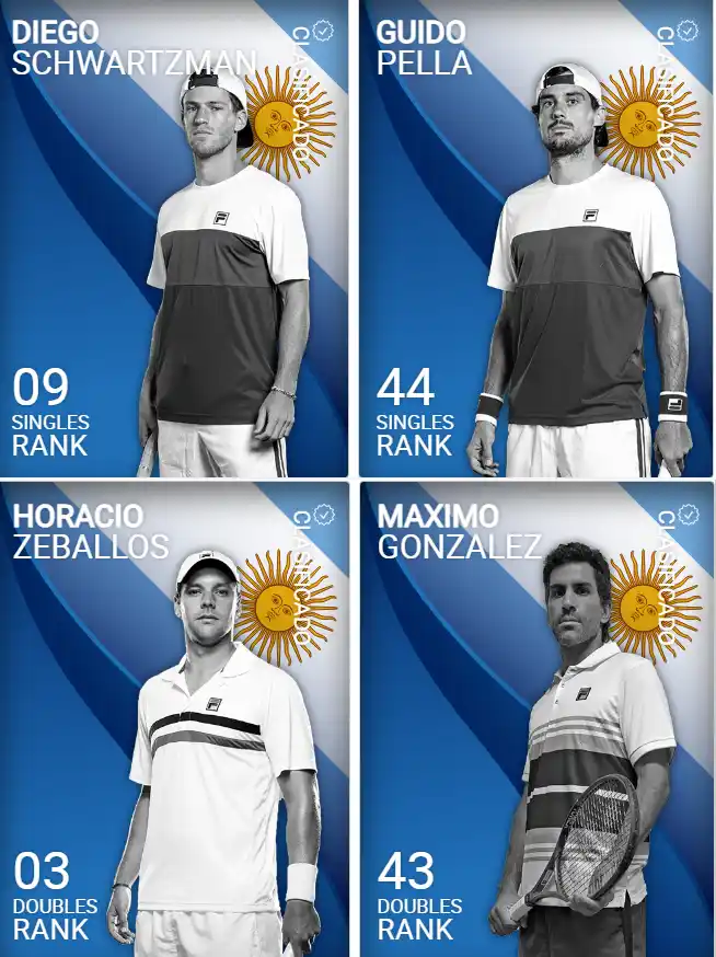 El equipo albiceleste dirá presente con Diego Schwartzman, Guido Pella, el propio Zeballos y Máximo González.