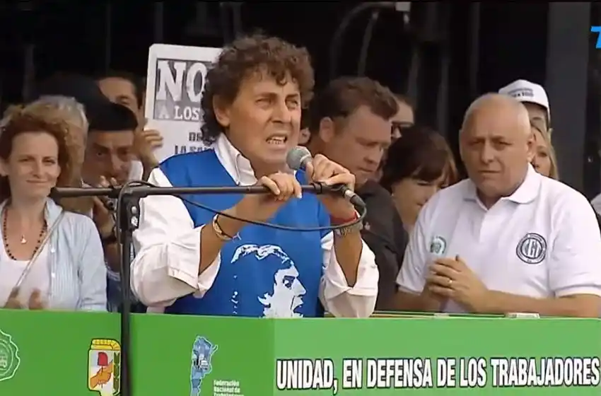 “Cuando nos juntamos aquellos que este gobierno demoniza, dice que la mejor democracia es la democracia sin sindicatos”, comentó y agregó que “ellos sentados en los sillones de los ministerios nos vienen y nos cuentan que hay que trabajar en la Argentina para sacarla adelante y son ellos todos vagos que apuestan a la timba financiera”.