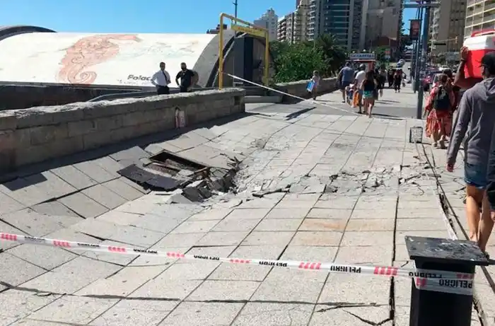 Vecinos y turistas de Mar del Plata se encontraron con una sorpresa este domingo al mediodía: a pocos metros de la Rambla, se hundió parte del paseo costero, uno de los sectores de mayor circulación peatonal de la ciudad.