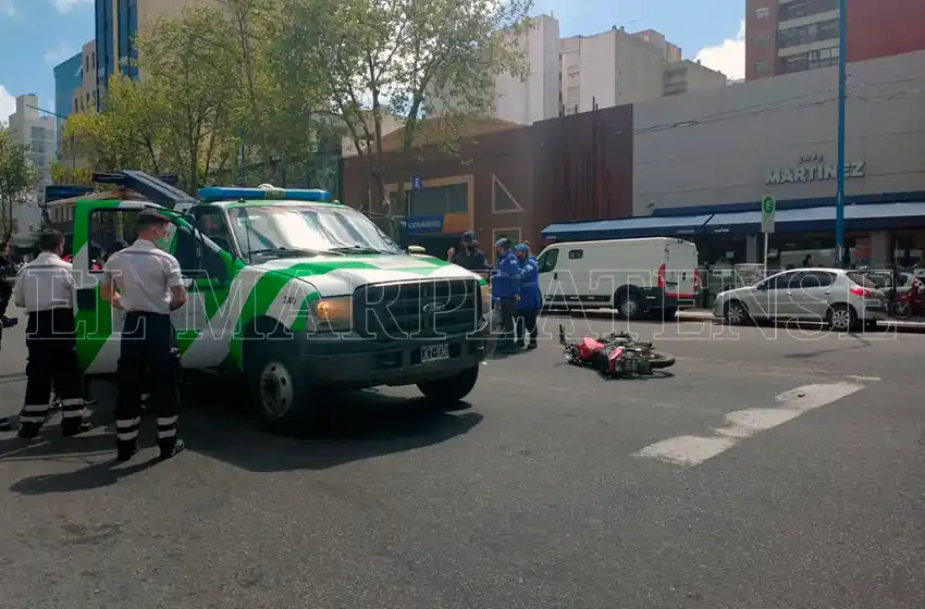 Una persona fue trasladada de urgencia al Hospital Interzonal General de Agudos "Dr. Oscar E. Alende" (HIGA) luego de ser embestida por una moto en avenida Luro y La Rioja. Los ocupantes no tenían casco, papeles, ni seguro del vehículo, y esperan el test de alcoholemia.