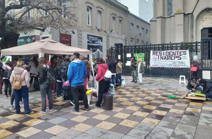 Profesionales de la salud y residentes ingresantes del Instituto Nacional de Rehabilitación Psicofísica del Sur (Inareps), llevan adelante una nueva medida de fuerza, la cual consiste en un paro de 48 horas, con la instalación de una carpa frente a la Catedral de Mar del Plata, en demanda del pago de salarios adeudados desde el mes de Junio.