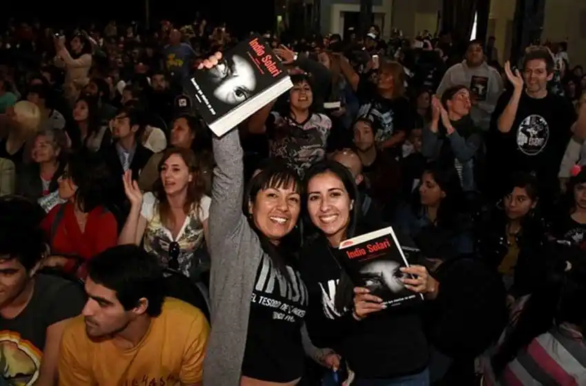 Más de mil personas se dieron cita para escuchar a su ídolo, para verlo. Pero a la distancia. Para ver un video del Indio Solari entrevistado por el escritor Marcelo Figueras, quien ofició como colaborador para que Recuerdos que mienten un poco, un libro de memorias y actualidad, viera la luz.