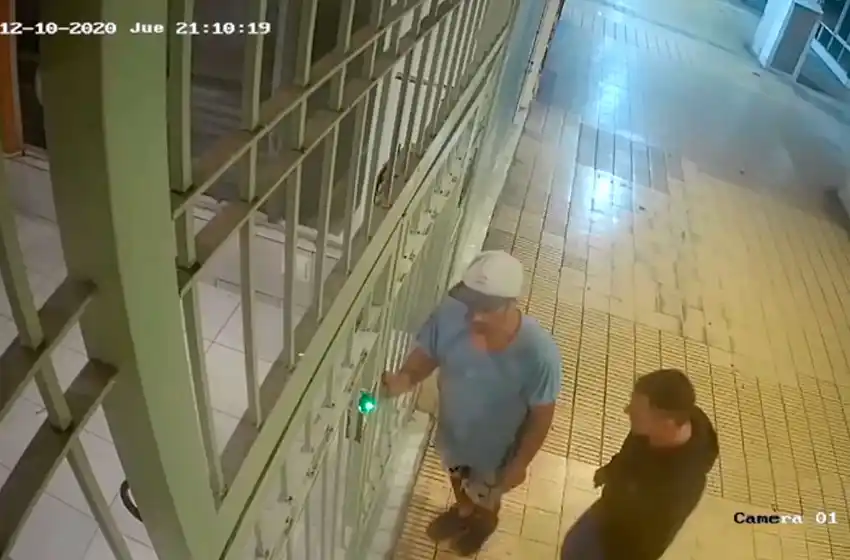 En el video se puede ver a dos hombres en la puerta de los departamentos ubicados sobre la calle Buenos Aires al 1600. Con la llave, abren la reja: uno de ellos entra mientras el otro se queda de campana.