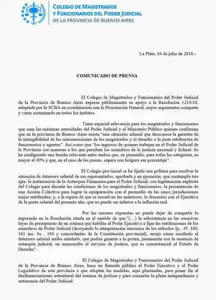 Las autoridades de la Justicia señalaron que la falta de suba salarial "desconoce la garantía de intangibilidad de las remuneraciones de los magistrados y el derecho a la justa remuneración", pese a que también aclararon ser conscientes de "las dificultades que afrontan las finanzas" en la Provincia.