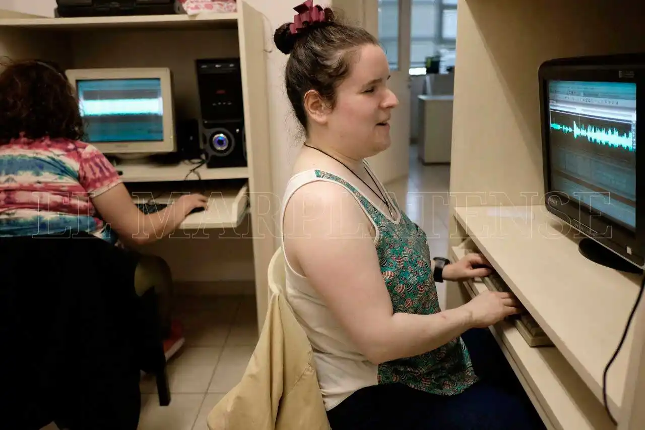 “Dos están trabajando en la digitalización de los cassettes a CD, tres están editando. Estamos tratando de que todos sepan manejar el total de la tarea. Hay otro que trabaja etiquetando todo en braile y acompaña en las visitas guiadas de escuelas y de institutos de formación docente.”, señaló la encargada del establecimiento.