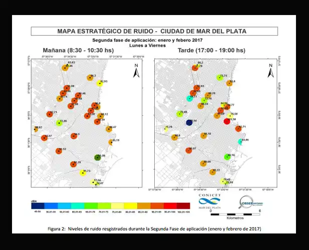 Lucrecia Allega, referente del relevamiento realizado por el Observatorio, destacó en diálogo con este medio que en las avenidas Champagnat, Jara, Colón, Luro, Libertad, Independencia, "el sonido se concentra y los valores fueron elevados", al igual que en el centro.