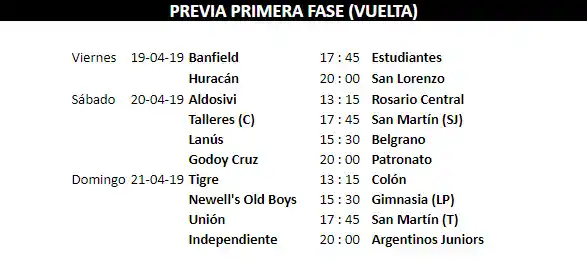 El ganador de esta llave de Primera Fase se medirá en 8VOS de Final frente a Vélez Sarsfield, que obtuvo la 6º colocación en la tabla de la SAF 2018-19.