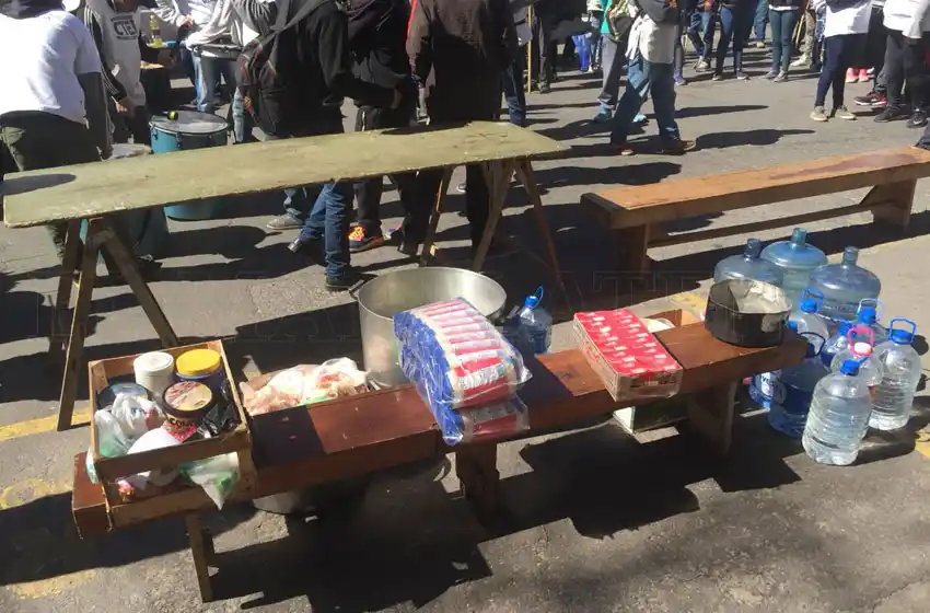 Las ollas populares de organizaciones sociales ya comienza a dar color a la protesta frente a la Municipalidad. Se espera todas las protestas confluyan a la tarde en otra marcha hacia la sede local del Ministerio de Trabajo.