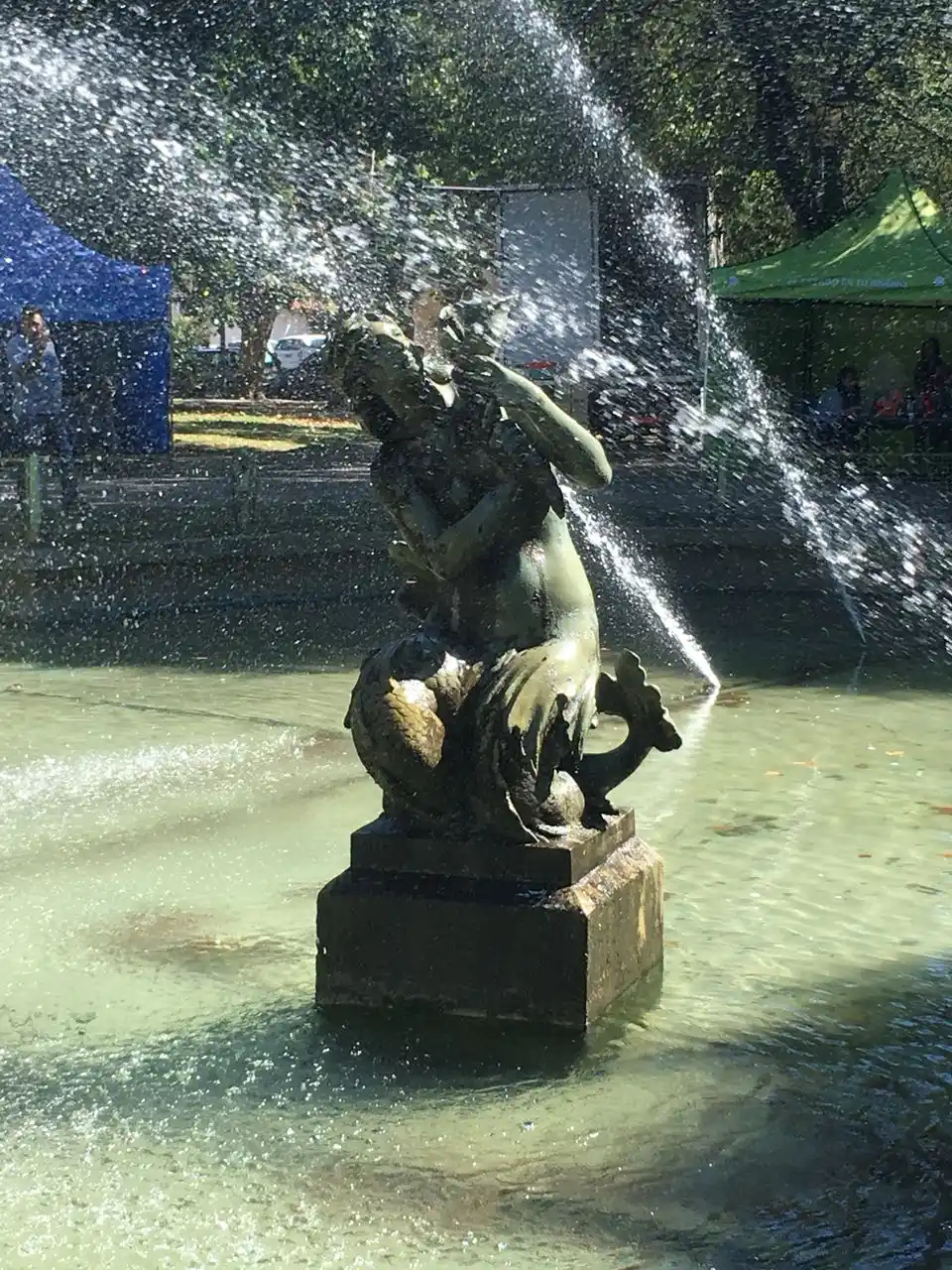 En tanto, la fuente de la plaza rodeada por las calles San Martín, 20 de Septiembre, 25 de Mayo y Dorrego, fue traída desde Francia en 1909 pero no así como luce hoy, sino en tres partes. “En realidad la conforman tres piezas escultóricas de hierro fundido, y fueron traídas a Mar del Plata desde París en 1909. Eran tres piezas por separado, la figura central responde al nacimiento de Venus”, sostuvo la directora.