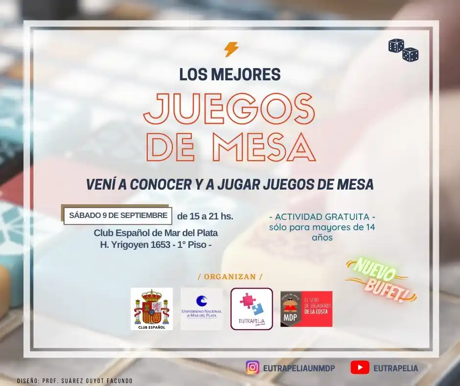 Nicolás Martínez también es ingeniero en informática, profesor de filosofía y está en un proyecto de extensión con la UNMDP sobre los juegos de mesa, que se desarrollará este sábado 9 de septiembre de 15 a 21 en el Club Español, ubicado en Hipólito Yrigoyen al 1653.