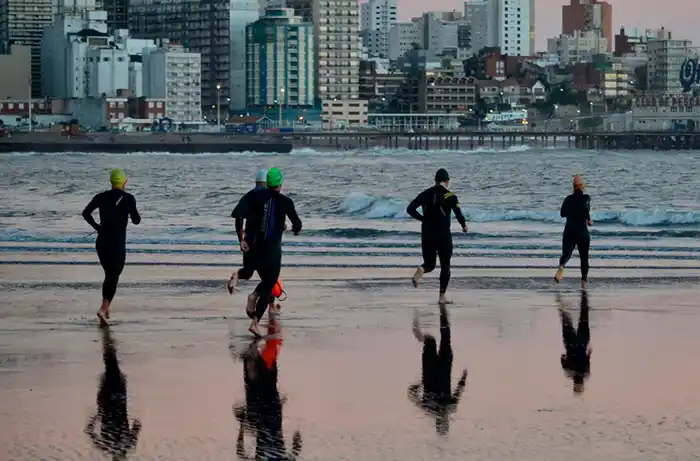 "Pero el recurso mas importante que necesitamos no se puede comprar, que el recurso humano, y de eso hubo muchísimo, y fue fundamental. Y así, el 7 de marzo podríamos decir que era el día en el cual el proyecto llegaba a fin, de algún modo. Nos encontramos en el Torreón del Monje 5.40 para prepararnos. Fueron llegando voluntarios y amigos que nos cuidarían en el agua durante el trayecto de natación. 6.34 am con un sol que nos daba la bienvenida en el este... Entramos al agua los 7 atletas y algunos kayaks… Paso poco las de una hora y ya estábamos afuera, listos para desprendernos de la piel negra de neoprene y comenzar a pedalear camino a Mar chiquita", recuerdan.