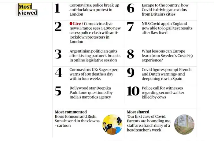 Las notas más leídas en el diario The Guardian.