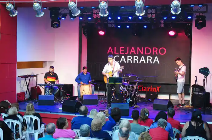A partir de las 19.30 iniciaron los shows musicales con el cantante de folklore melódico Alejandro Carrara. El músico, compositor e intérprete marplatense se mostró contento con el show que brindó en Espacio Clarín y le dijo al El Marplatense "el público es encantador y se sumó a bailar. Este espacio sirve para reafirmar que lo que venimos haciendo le gusta a la gente y es un impulso a seguir adelante".