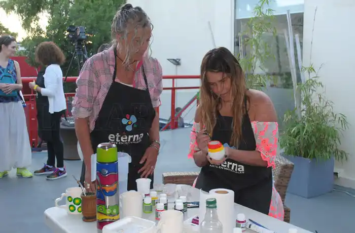 La tarde comenzó en Espacio Clarín con la “Plaza de arte” donde los artistas Beto César, Lino Patalano, Marta González, Zulma Faiad y Nazarena Vélez, pintaron bachas, tazas y telas con un objetivo solidario a beneficio de GAMA (Grupo Apoyo Mal de Alzheimer y/o Enfermedades Semejantes) y la Gruta Nuestra Señora de Lourdes Mar del Plata.