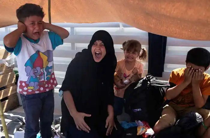 Las imágenes muestran madres llorando huyendo con sus hijos en brazos y niños escapando del humo, sobre lo que fue la segunda protesta en 24 horas de los solicitantes de asilo contra su alojamiento en un nuevo campo.