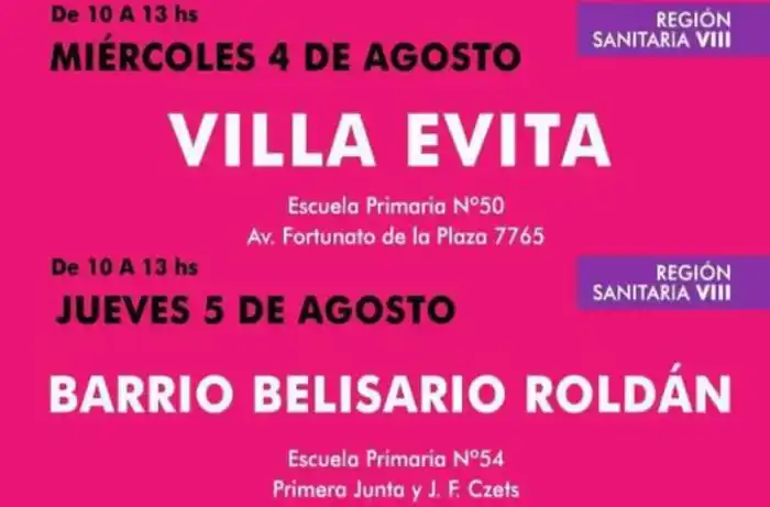 Esta semana, los vacunatorios estarán ubicados en los barrios Belisario Roldán y Villa Evita y funcionarán de 10 a 13. Es sin inscripción previa y con la sola presentación del DNI.