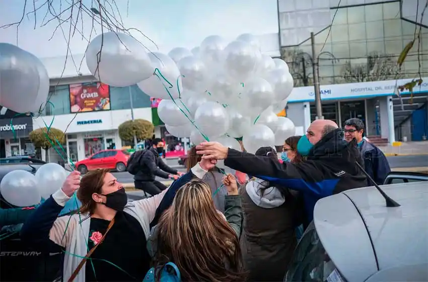 El dolor y el desconcierto por la pérdida de María del Rosario fueron transmitidos este lunes en la suelta de globos blancos que realizaron compañeros, amigos y su marido, Leonardo Fernández, en reconocimiento a la enfermera del hospital Bernardo Houssay que falleció luego del alta por coronavirus.