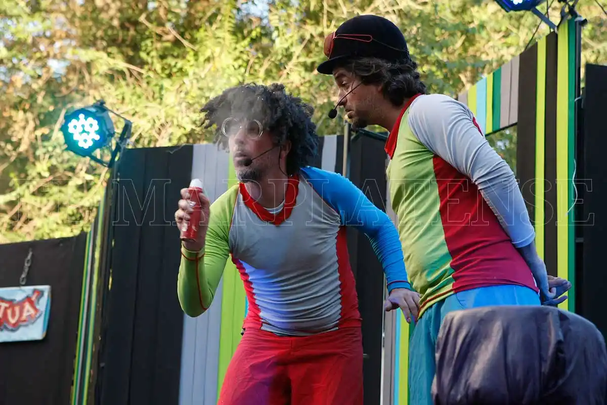 La primera actividad de la jornada se realizó en el escenario de Alberti y Alvear, en el marco de las presentaciones que organiza cada viernes el programa provincial AcercArte. La Pipetuá brindó su show dirigido a toda la familia, con una selección de sus mejores escenas de humor, malabares musicales, burbujas gigantes, objetos lumínicos, rodados excéntricos y música en vivo. La original propuesta de clown y circo moderno divirtió a grandes y chicos.