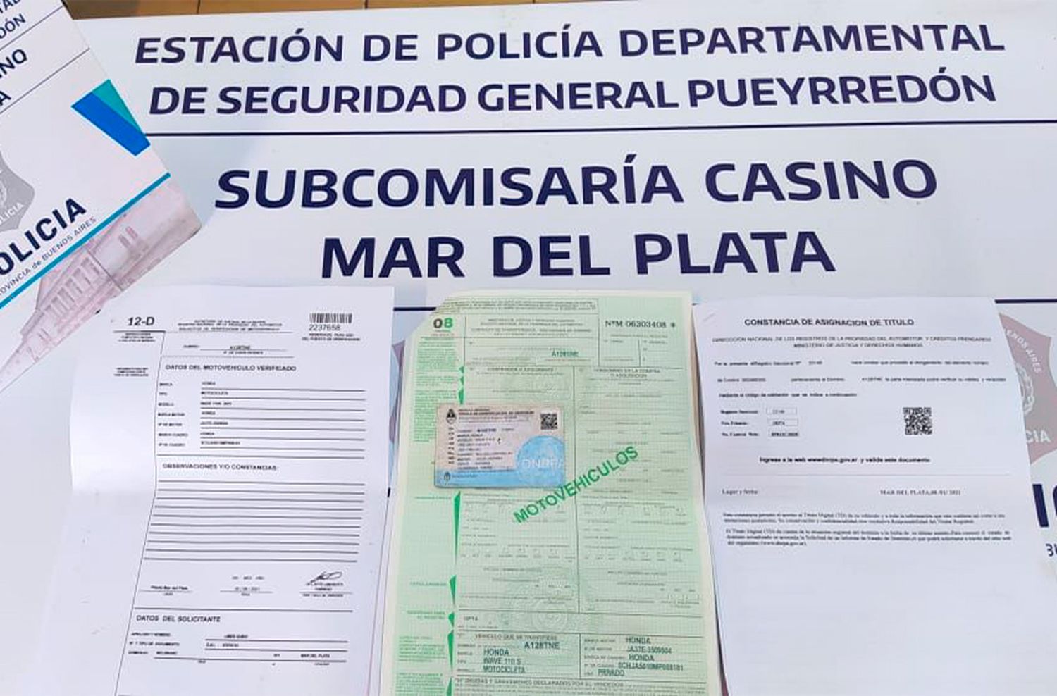 El 4 de agosto un hombre de 40 años realizo una denuncia en la Subcomisaría Casino, donde relató que le habían sustraído su moto marca Honda modelo New Wave, que había dejado estacionado junto a su cedula verde en B. Marítimo al 2600.