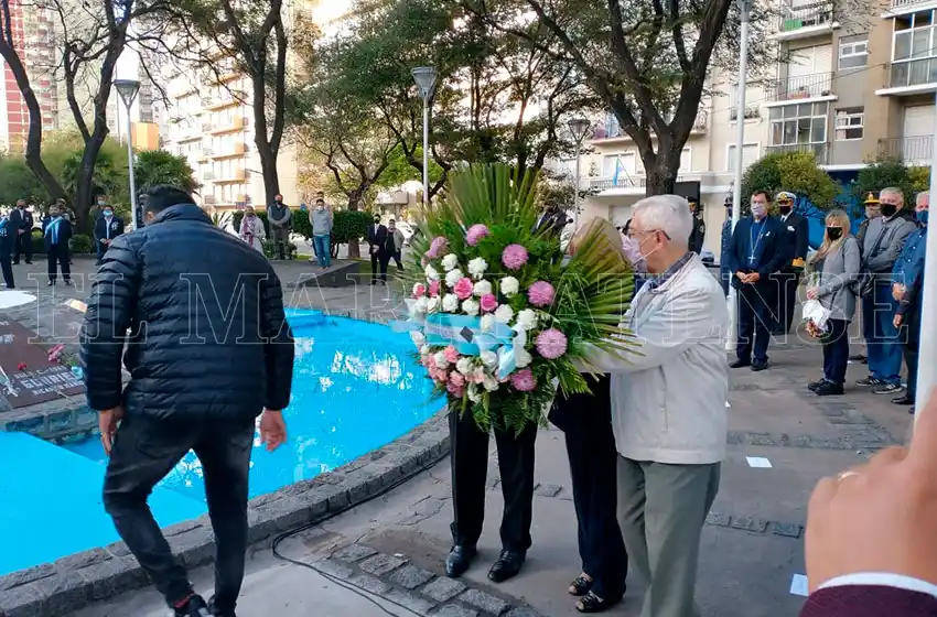 El acto, encabezado por el intendente Guillermo Montenegro, tuvo la presencia de las autoridades del Centro de ex Combatientes, el presidente del Honorable Concejo Deliberante y del Obispo Gabriel Mestre. Además, las fuerzas militares y de Seguridad.