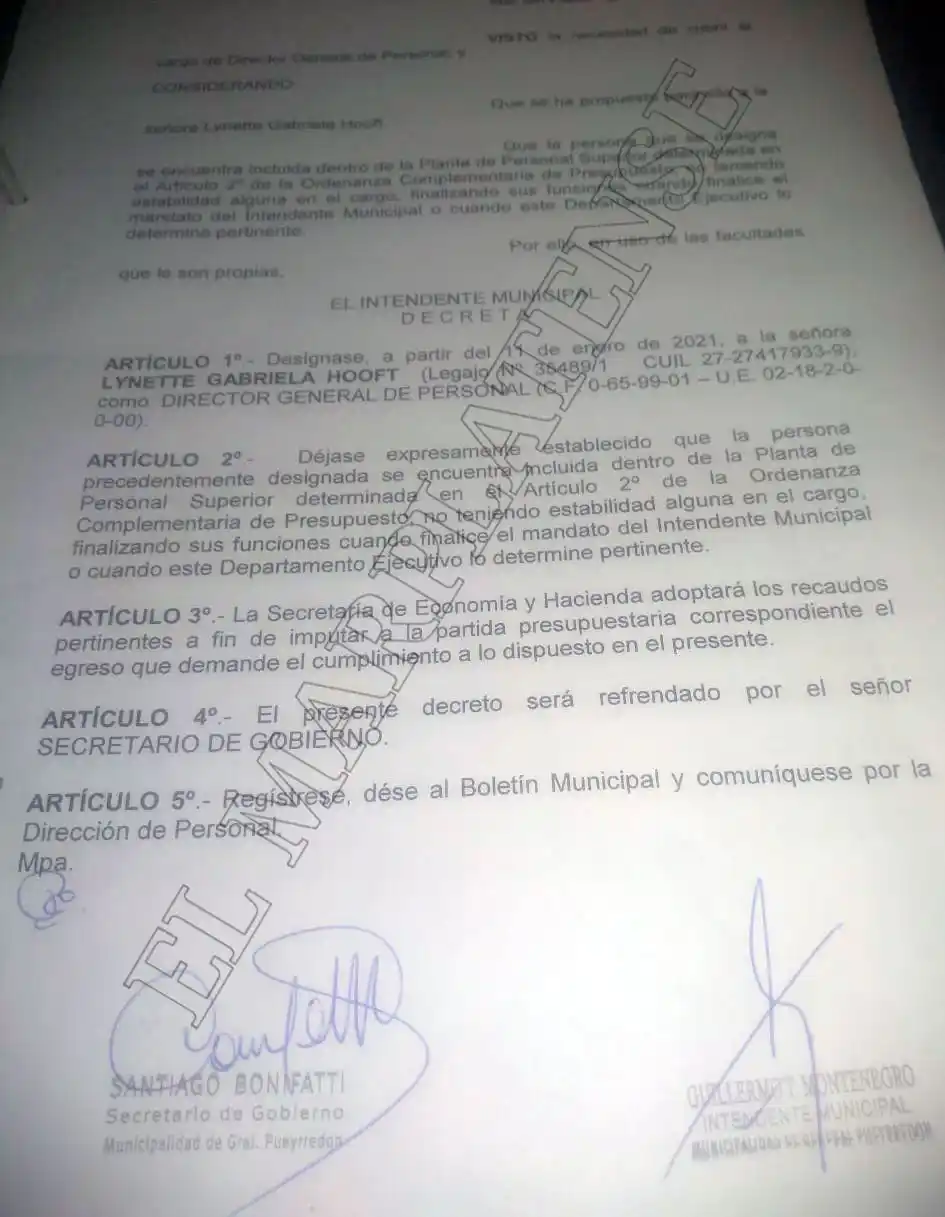A través del reciente decreto N° 41, al cual El Marplatense tuvo acceso, el intendente Guillermo Montenegro designó a Lynette Hooft en el cargo de directora general de Personal en la Comuna de General Pueyrredon. Una área que pertenece a la estructura de la secretaría de Gobierno, que encabeza el Dr. Santiago Bonifatti.