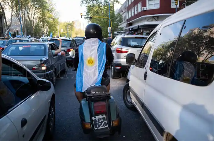 En esta ocasión, para evitar la propagación del coronavirus, la celebración se llevó adelante con barbijos y desde camionetas, autos, motos y bicicletas que recorrieron el centro de la ciudad.