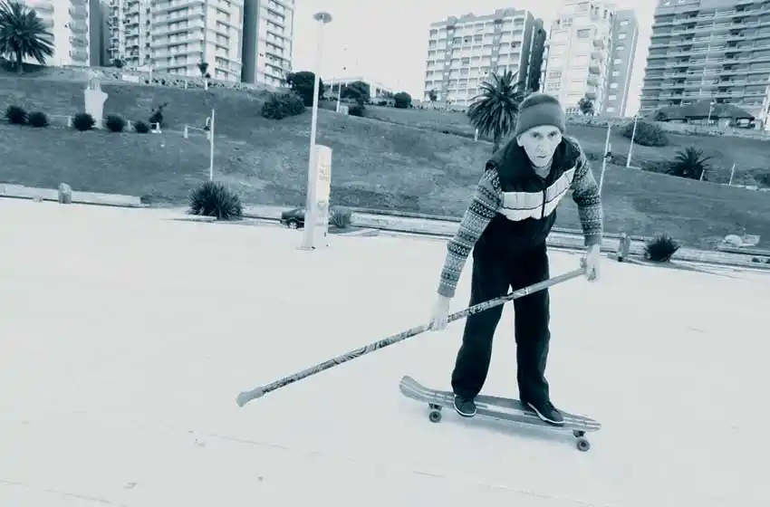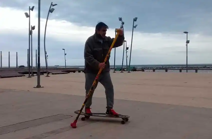 "Se practica con un taco resistente con una base de goma que hace que uno traccione el asfalto o suelo en superficies planas como Varese o Playa Grande, es como un Stand Up Paddle en asfalto", graficó Nannini, con más de 40 años en los deportes náuticos.