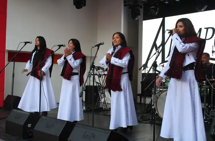 La jornada del martes dedicada al folclore comenzó con el grupo Atemporal, integrado por Martha Tello, Luz Molina, Jesica Albarracín y Silvina Cruz, mujeres norteñas que llevan el canto en el alma y el sentir en la voz.