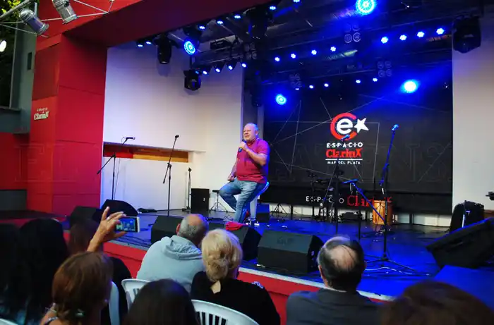 Cacho Buenaventura, el gran humorista cordobés, nacido en Cruz del Eje, intervino en el escenario de Espacio Clarín e hizo divertir a los presentes con sus clásicos cuentos.