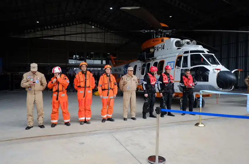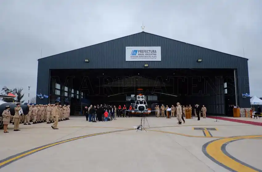 En el hangar se expuso un helicóptero y un avión, que servirán para patrullaje aéreo y para rescates. "Todos aquellos que hoy están navegando en alta mar, produciendo o pescando ya pueden sentir una protección mayor, porque prefectura podrá utilizar sus medios durante el día y la noche", expresó.