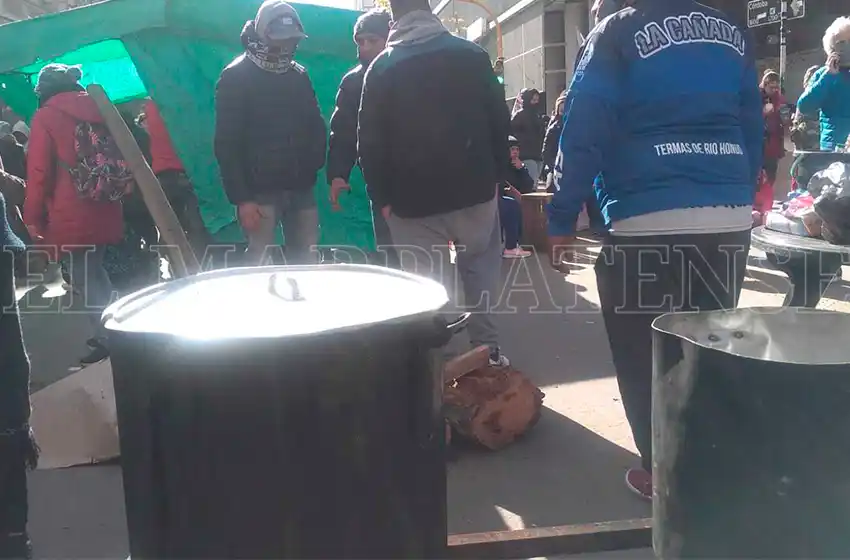 Organizaciones sociales sorprendieron esta mañana en la Peatonal San Martín y córdoba con la instalación de carpas y ollas populares, cortando de ese modo el tránsito por esa arteria del micro centro marplatense.