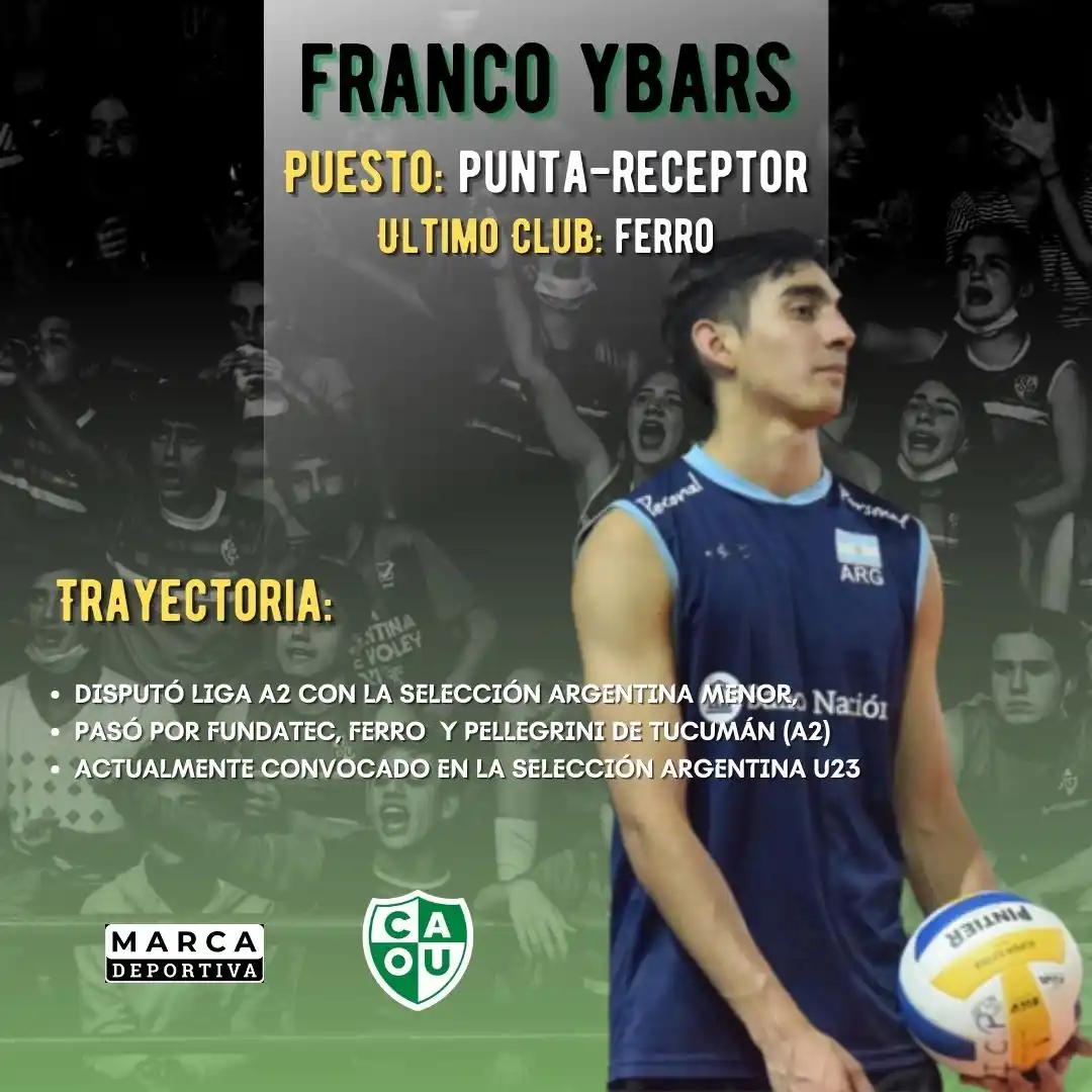 Por último, el punta-receptor Franco Ybars también se sumará al plantel. El fueguino de 21 años proviene de Ferro Voley y también tiene pasado en la Liga A2 con la Selección Argentina Menor y en Pellegrini de Tucumán. Actualmente, está convocado para la Selección Argentina U23.