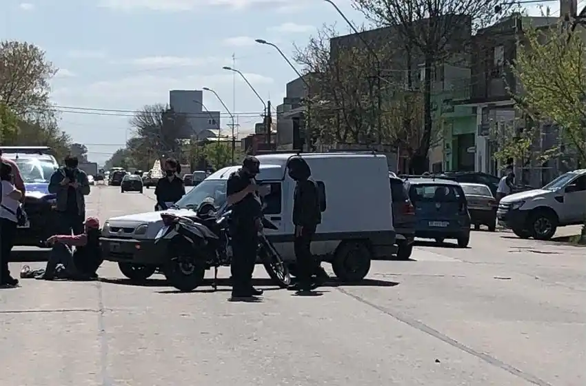 Una camioneta Renault Express blanca que ingresaba desde Guido hacia la avenida chocó al motociclista. Una de las personas sufrió varios golpes por lo que será trasladado al Hospital Interzonal General de Agudos.