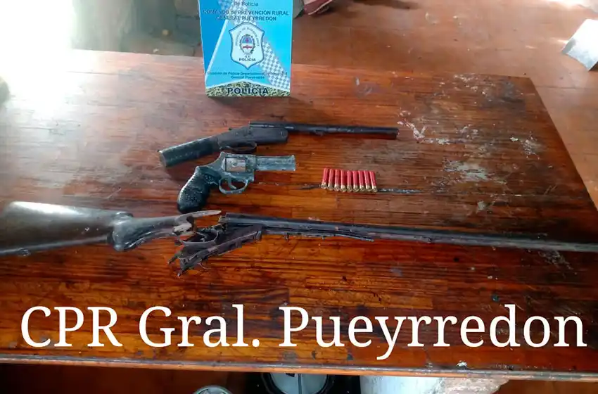 Además de aprehender a los sospechosos, un hombre de 22 años y otro de 18, procedieron al secuestro de una escopeta de dos caños calibre 16, un pistolón calibre 36, un revólver calibre 38, marca jaguar, y seis cartuchos calibre 36.