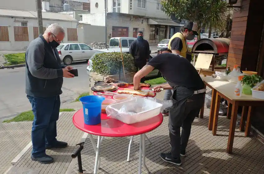 La Comisión de Reactivación Económica elevó una vez más el pedido a Provincia para este y otros sectores. Y, a pesar de ello, este jueves hubo un nuevo reclamo. Esteban Rabini, de Los Cardales, y Esteban Usai, del Rey del Calzón, trasladaron la parrilla a la calle. Más precisamente en Marcelo T. de Alvear y Solís.