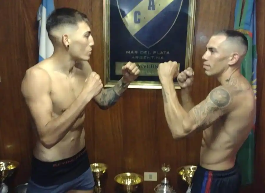 Esta tarde, en la sede de la institución se realizó el pesaje donde los cuatro protagonistas llamativamente dieron el mismo peso exacto. Facundo Rojas estará enfrentando a Luis Aumada en su regreso al ring en Mar del Plata luego de dos derrotas fuera por lo que será un punto importante para, con el respaldo de su gente, llegar al quinto triunfo dentro del campo rentado.