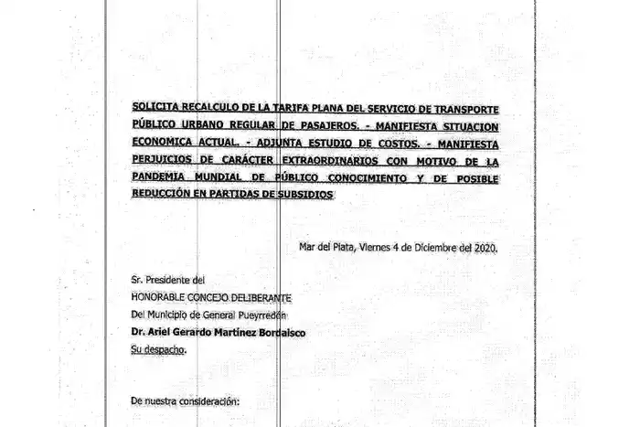 A su vez, alertaron que el contrato de concesión vigente con la comuna de General Pueyrredon se "ha tornado de imposible cumplimiento". "El mantenimiento de la ecuación económica financiera de las concesiones constituye una cuestión de orden público ya que la actual situación deficitaria del sistema no sólo redundará en la imposibilidad de los concesionarios de cubrir los costos de explotación y de tener una 'utilidad razonable' , sino que, lo que es más grave aún, desembocará en un impedimento para brindar un servicio regular y eficiente", aseguraron.